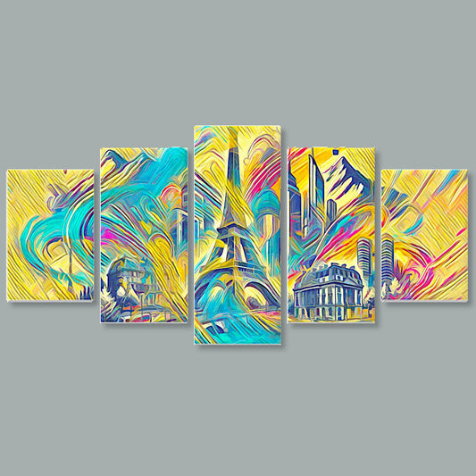Tela 5 Pannelli Telaio Medio Torre Eiffel: Eleganza e Modernità in Cinque Pannelli