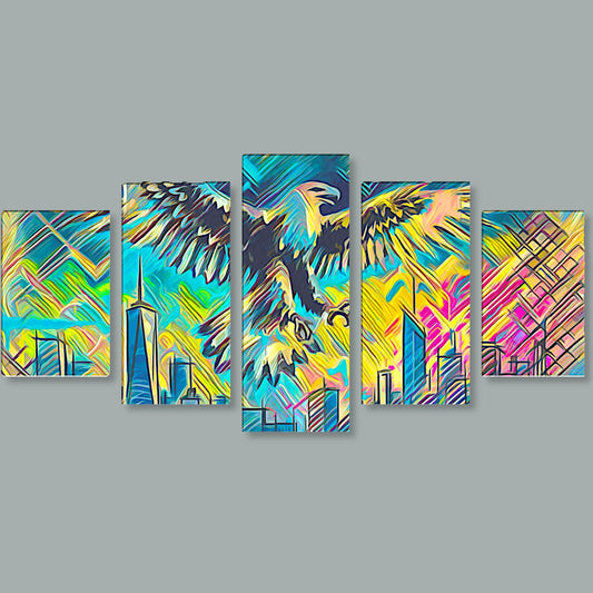 Tela 5 Pannelli Telaio Medio Majestic Eagle: Potenza e Libertà in Cinque Pannelli