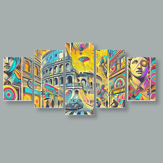 Canvas 5 Pannelli Medium Telaio Rome 2.0: Arte urbana futuristica in cinque pannelli