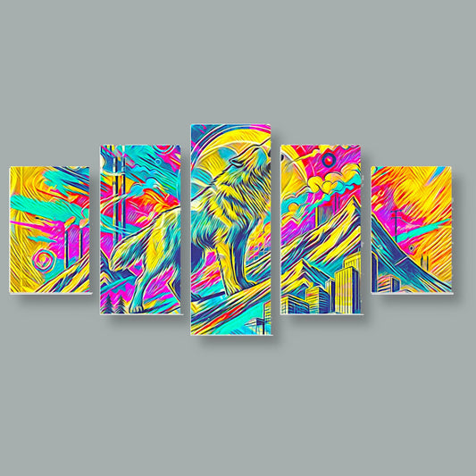 Tela 5 Pannelli Telaio Medio Wild Wolf: Maestà e Natura in Cinque Pannelli